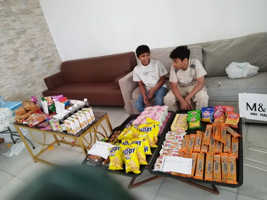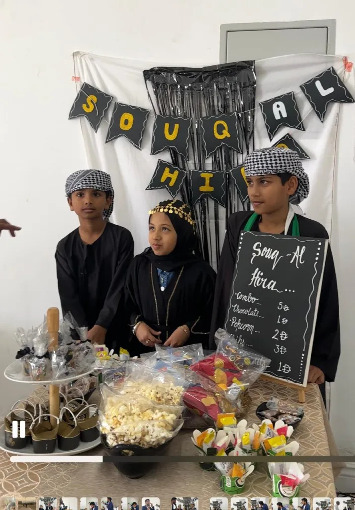 The event began with a recitation from the Qur’an by Arhaam Ikram, followed by a dua by Fakeer Ahmed. The inaugural address was delivered by M. E. Moolur. One of the main attractions of the programme was “Souk Al Atfal – Kids Market,” an initiative aimed at encouraging entrepreneurship among children. Young participants including Arhaam Ikram, Shayaan Shameer, Muhammad Nouman, Marwaan, Hiza, Abdul Ahad and Razin displayed and sold products, with parents supporting their efforts.