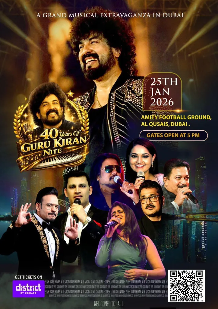 ದುಬೈ; ಜನವರಿ 25ರಂದು ‘ಗುರು ಕಿರಣ್ ನೈಟ್’ ಅದ್ಧೂರಿ ಸಂಗೀತ ಕಾರ್ಯಕ್ರಮ