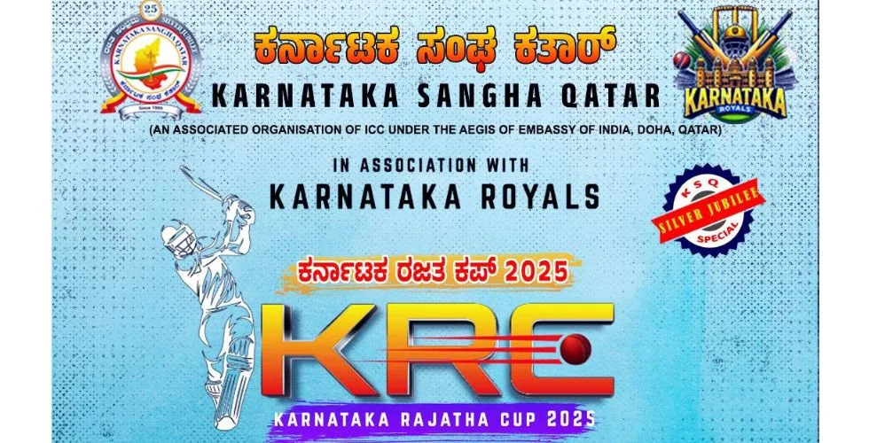 Doha: Cricket enthusiasts in Qatar are gearing up for the much-awaited Karnataka Rajatha Cup (KRC), which will kick off on October 14 at 7:00 p.m. at the Qatar Foundation Cricket Ground. The four-day tournament, organised by Karnataka Sangha Qatar and Karnataka Royals Qatar, will run till October 17, forming a major highlight of the Silver Jubilee Year celebrations of Karnataka Sangha Qatar.
