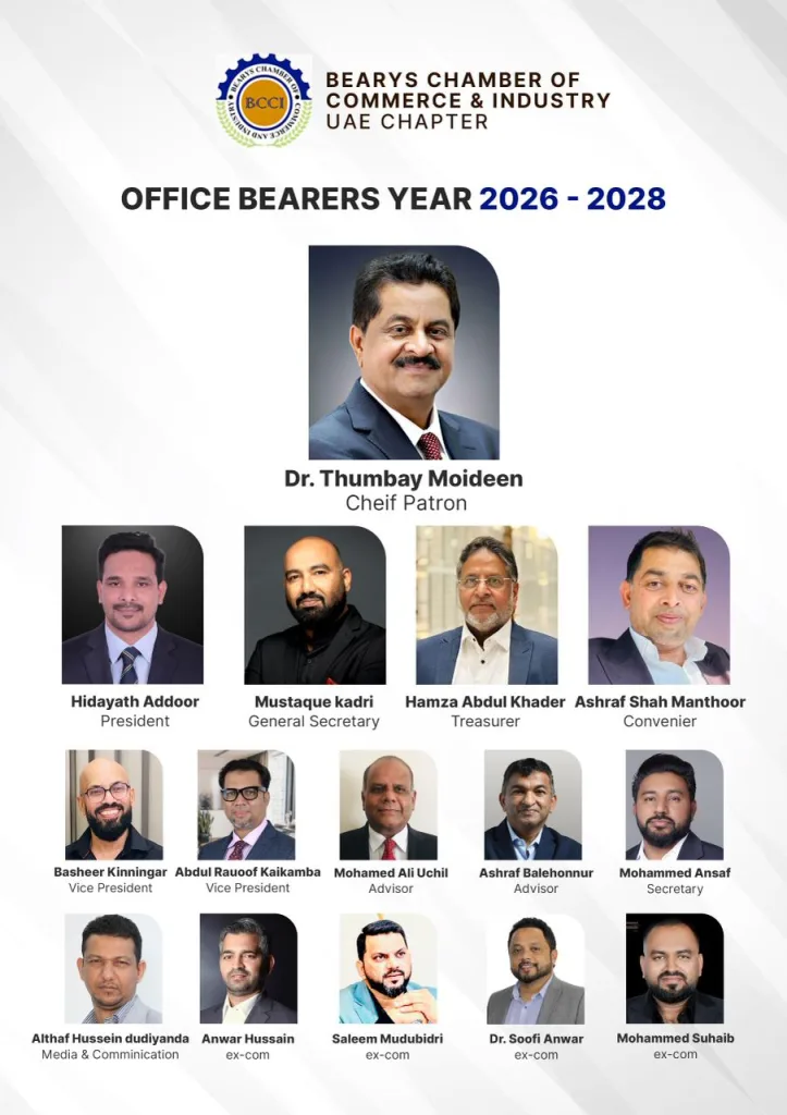 ದುಬೈ: ಯುಎಇಯ ಬ್ಯಾರೀಸ್ ಚೇಂಬರ್ ಆಫ್ ಕಾಮರ್ಸ್ & ಇಂಡಸ್ಟ್ರಿ(BCCI) ಅಧ್ಯಕ್ಷರಾಗಿ ಹಿದಾಯತ್‌ ಅಡ್ಡೂರು ಪುನರಾಯ್ಕೆ ಆಗಿದ್ದಾರೆ.