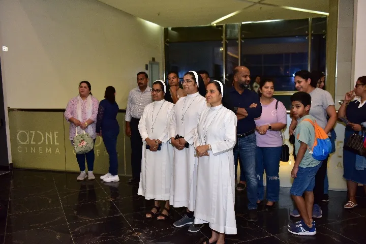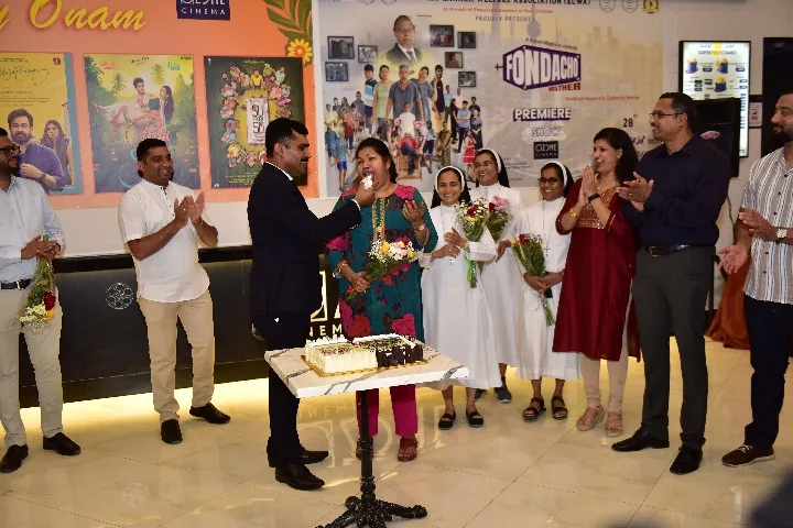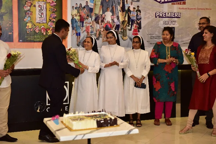 The dignitaries cut a cake to mark the grand opening of the premiere. In his address, Fr. Avil Rosario said the film is a proud moment for the global Konkani community and hoped that Konkani cinema would continue to grow and give more opportunities to artists.