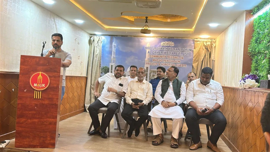 Al Qamar Trust President Naufal Muhammad and MJWF President Siraj Khadar briefed the gathering on their respective organisations’ objectives and activities, highlighting their coordinated efforts toward the renovation of the Moolur Jumma Masjid.