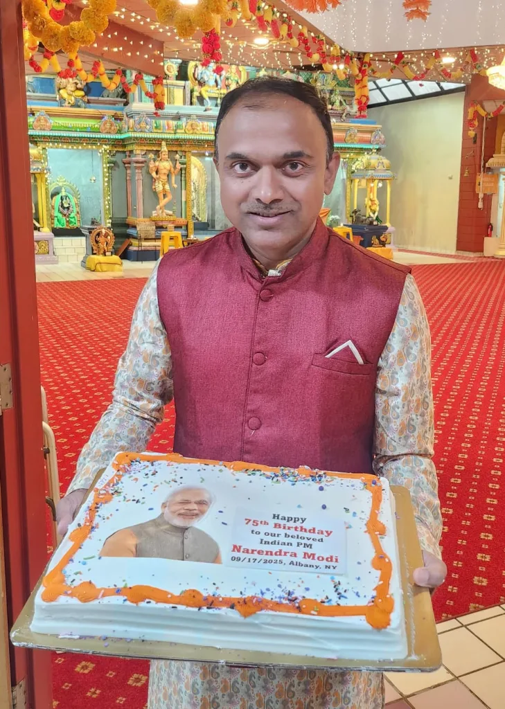 ನ್ಯೂಯಾರ್ಕ್: ಬುಧವಾರ ಸಂಜೆ ನ್ಯೂಯಾರ್ಕ್ ರಾಜ್ಯದ ರಾಜಧಾನಿ ಅಲ್ಬನಿಯಲ್ಲಿರುವ ಹಿಂದೂ ದೇವಾಲಯದಲ್ಲಿ ಭಾರತದ ಪ್ರಧಾನ ಮಂತ್ರಿ ನರೇಂದ್ರ ಮೋದಿ ಅವರ 75ನೇ ಹುಟ್ಟುಹಬ್ಬವನ್ನು ಸಾಮೂಹಿಕವಾಗಿ ದೇವರಿಗೆ ಅರ್ಚನೆ, ಪ್ರಾರ್ಥನೆ, ಪೂಜೆ ಮಾಡುವುದರೊಂದಿಗೆ ಆಚರಿಸಲಾಯಿತು. ಜೊತೆಗೆ ಮೋದಿಯವರ 75ನೇ ಹುಟ್ಟು ಹಬ್ಬದ ವಿಶೇಷ ಕೇಕನ್ನು ಕಟ್ ಮಾಡುವ ಮೂಲಕ ಆಚರಿಸಲಾಯಿತು.