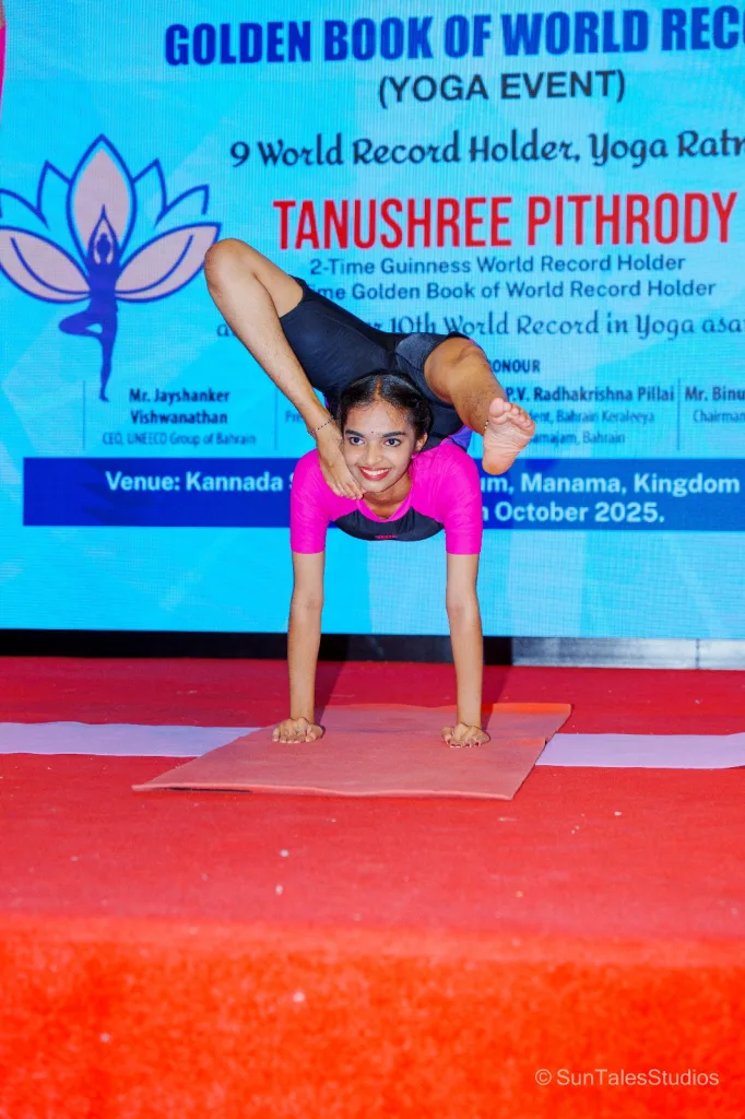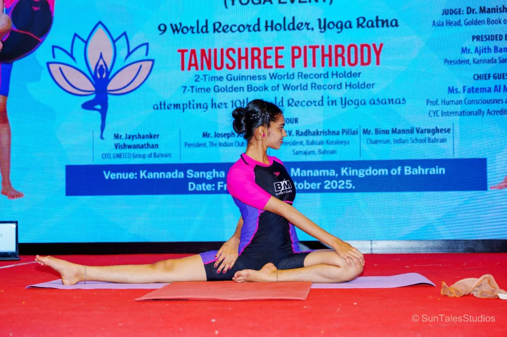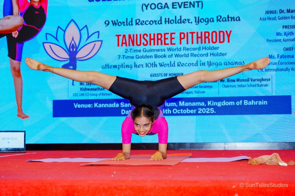 ಬಹರೈನ್ ಕನ್ನಡ ಭವನದಲ್ಲಿ 10ನೇ ವಿಶ್ವದಾಖಲೆ ಬರೆದ ಉಡುಪಿಯ ತನುಶ್ರೀ ಪಿತ್ರೋಡಿ; 50 ನಿಮಿಷಗಳಲ್ಲಿ ಯೋಗದ 333 ಆಸನಗಳ ಪ್ರದರ್ಶನ